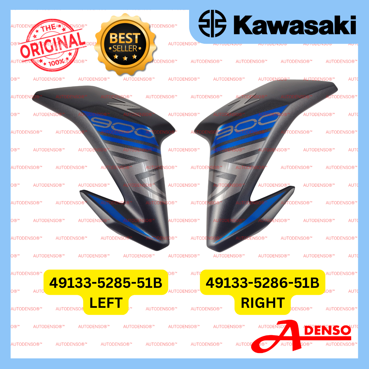 Z900 SHROUD LEFT & RIGHT SIDE MMC.GREY+BLUE (KAWASAKI100%ORIGINAL) 49133-5285-51B LH 49133-5286-51B RH