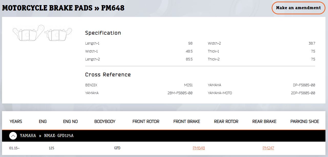 NIBK PM648, BRAKE PAD