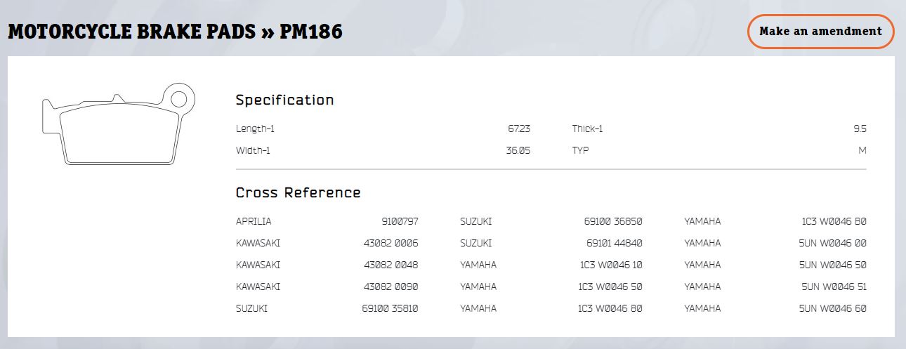 NIBK PM186, BRAKE PAD