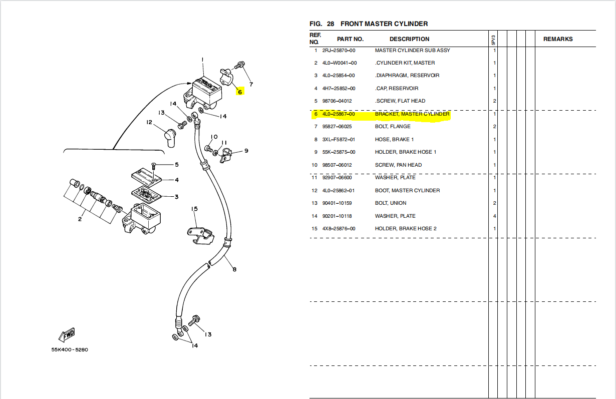 RXZ BRACKET,MASTER CYLINDER